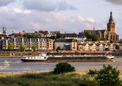 Dat Nijmegen, net als Rome, gebouwd is op zeven heuvels, merkt u tijdens deze wandeling. Niet alle oorspronkelijke heuvels zijn meer als zodanig te herkennen – in de loop der eeuwen is er heel wat geslecht en geëgaliseerd – maar u zult regelmatig moeten stijgen, of dalen. Het laagste punt van de route is de Waal. Vanaf de Waal kunt u zien hoe de stad oprijst; een on-Nederlands gezicht.